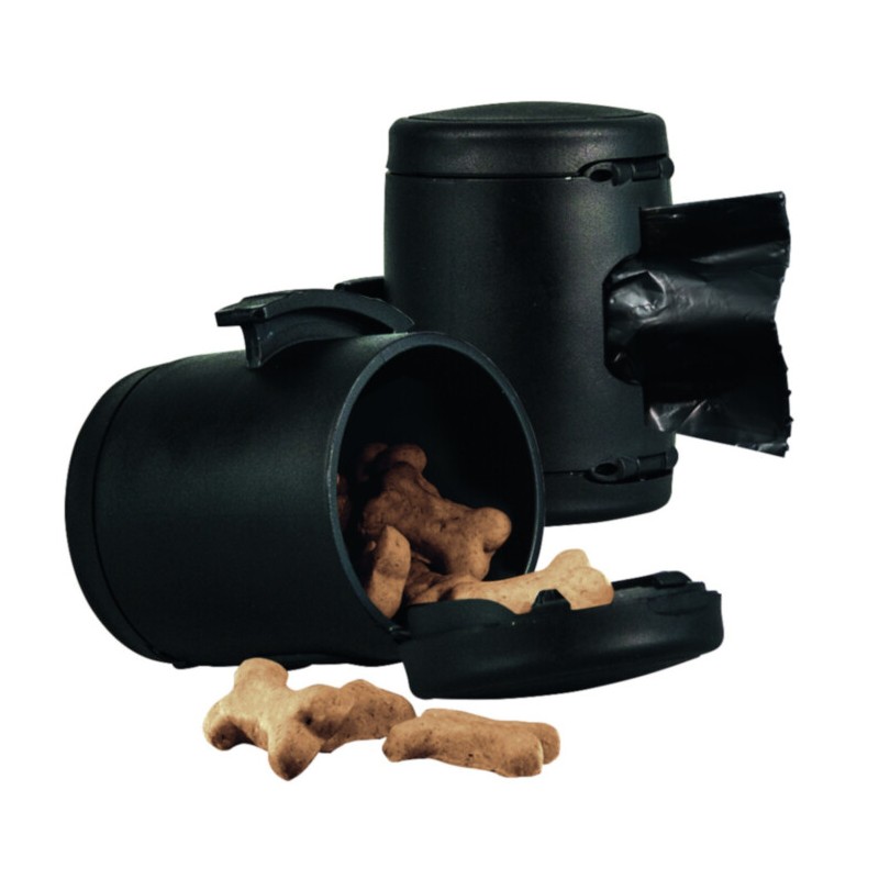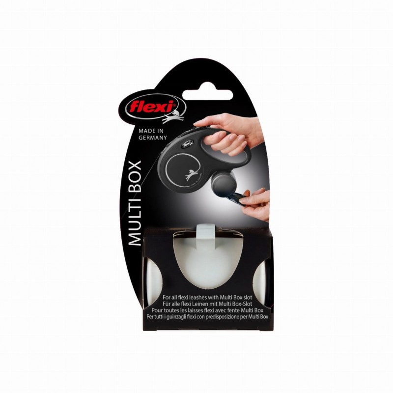 FLEXI Multi Box - pojemnik 2w1. Pojemnik, w którym możemy nosić przysmaki dla pupila (aby go nagradzać podczas spaceru - funkcja wychowawcza) lub woreczki na psie kupy (sprzątajmy po swoich pupilach). Dzięki specjalnemu zaczepowi pojemnik można zamocować przy smyczy Flexi, dzięki czemu nie trzeba już chować woreczków, czy przysmaków po kieszeniach!