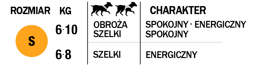 Dla: psów o wadze 6-10kg, noszących szelki, o charakterze spokojnym