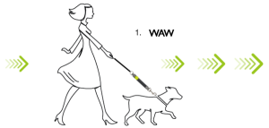 1. Podczas rozciągania WAW gwarantuje progresyjne miękkie rozciąganie, za każdym razem gdy pies ciągnie WAW powoli ulega wydłużeniu, a gdy pies zwalnia WAW powraca do pierwotnej długości. Dzięki temu pies i jego przewodnik zawsze zachowują bezpieczną postawę, a spacery są przyjemne i relaksujące dla spacerowiczów.