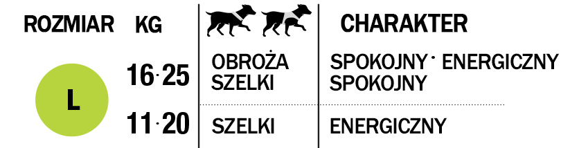 Dla: psów o wadze 16-25kg, noszących szelki, o charakterze spokojnym