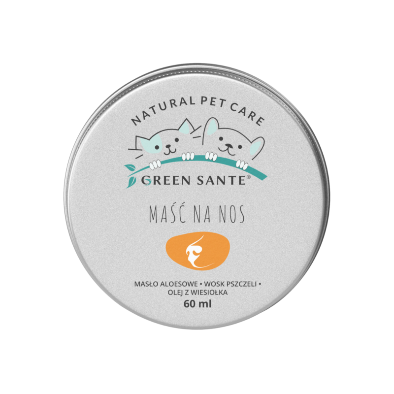 Naturalna maść na nos GREEN SANTE® przeznaczona jest do codziennej pielęgnacji delikatnej i wrażliwej skóry nosa dla psów i kotów. Zawiera skoncentrowane i bezpieczne składniki o właściwościach silnie natłuszczających, które zostały specjalnie dobrane z myślą o pielęgnacji i regeneracji przesuszonej, pękniętej i zrogowaciałej skory nosa, także u psów ras brachycefalicznych. Naturalne składniki doskonale nawilżają̨ i regenerują̨ skórę nosa, zmiękczając przesuszenia, redukując pęknięcia i łagodząc zrogowacenia naskórka.