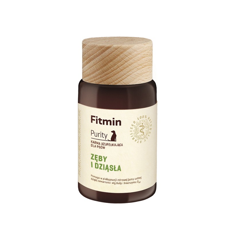 Preparat składa się z alg ascophyllus nodosum, koenzymu Q10, witaminy C i β-glukanów Wszystkie surowce zostały dobrane tak, by uzyskać jak najskuteczniejszy efekt pielęgnacji jamy ustnej psa (działanie antybakteryjne, wspomaganie zdrowego stanu dziąseł) i wzmocnienie odporności całego organizmu. Suplement Fitmin dog Purity Zęby i dziąsła jest przeznaczony dla dorosłych psów, by zapobiegać tworzeniu się osadu nazębnego i kamienia. Zaleca się łączenie podawania suplementu z mechanicznym czyszczeniem zębów. Algi ascophyllus nodosum stanowią bogate źródło witamin i substancji mineralnych (zwłaszcza jodu), dlatego konieczne jest kontrolowanie jego spożycia i nieprzekraczanie zalecanego dawkowania. Suplement nie zastępuje zróżnicowanej diety i nie powinien być stosowany u psów z chorobami tarczycy.