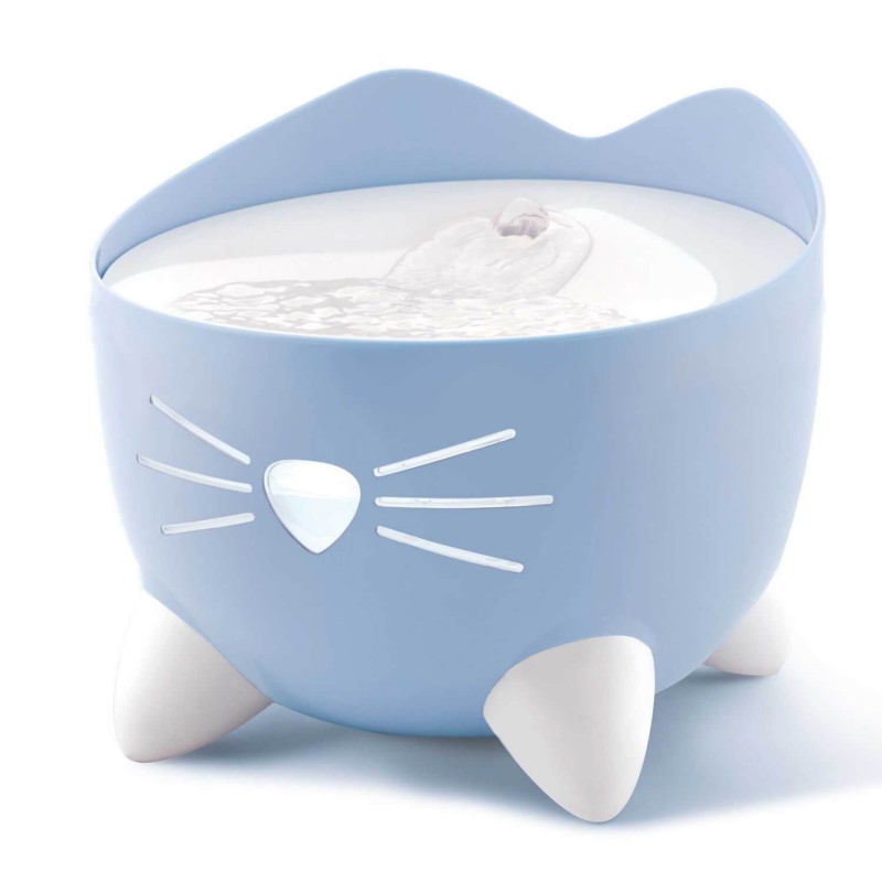 Catit PIXI to fontanna dla kota do picia wody o oryginalnym i uroczym kształcie kotka z małymi łapkami i wąsami. Poidło dla kota oprócz cudownego wyglądu charakteryzuje się również wysoce funkcjonalnymi cechami, które zapewniają płynną pracę. W zależności od wybranego ustawienia, bieżąca woda tworzy bąbelki lub może płynąć strumieniem. Urządzenie posiada wydajną pompkę, zawieszoną w zbiorniku dzięki czemu praca fontanny jest bardzo cicha. Filtr, w który wyposażona jest fontanna czyści wodę i usuwa nieprzyjemne zapachy. Dodatkowo woda jest zmiękczana poprzez redukcję poziomu magnezu i wapnia. Gdy poziom wody spadnie poniżej minimum, pompa automatycznie wyłączy się, dzięki czemu nie ma obawy o jej uszkodzenie.