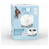 Catit PIXI to fontanna o oryginalnym i uroczym kształcie kotka z małymi łapkami i wąsami. Poidło dla kota oprócz cudownego wyglądu charakteryzuje się również wysoce funkcjonalnymi cechami, które zapewniają płynną pracę. W zależności od wybranego ustawienia, bieżąca woda tworzy bąbelki lub może płynąć strumieniem. Urządzenie posiada wydajną pompkę, zawieszoną w zbiorniku dzięki czemu praca fontanny jest bardzo cicha. Filtr, w który wyposażona jest fontanna czyści wodę i usuwa nieprzyjemne zapachy. Dodatkowo woda jest zmiękczana poprzez redukcję poziomu magnezu i wapnia. Gdy poziom wody spadnie poniżej minimum, pompa automatycznie wyłączy się, dzięki czemu nie ma obawy o jej uszkodzenie.