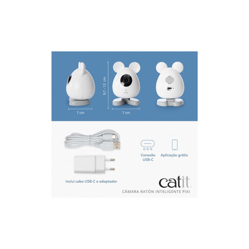Dzięki swoim kompaktowym rozmiarom kamera Catit PIXI Smart w kształcie myszki zmieści się praktycznie w każdym zakątku domu. Jej uroczy wygląd myszki sprawia, że jest to zabawny element dekoracyjny. Kamerę Catit PIXI Smart w kształcie myszki można łatwo postawić na nóżkach, obrócić o 360° w poziomie i przechylić, aby patrzyła w górę i w dół.