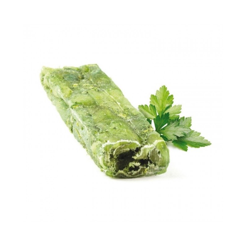 Skład: 92% skóra wołowa, 2,5% żwacz wołowy, 2,5% penis wołowy, 1% minerały (fosforan dwuwapniowy, węglan wapniowo-magnezowy, węglan wapnia z muszli ostryg, tlenek magnezu), pietruszka, chlorofil, lizozym