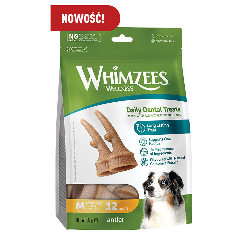 ZAPEWNIA ŚWIEŻY ODDECH | regularne stosowanie WHIMZEES utrzymuje świeżość w jamie ustnej psa