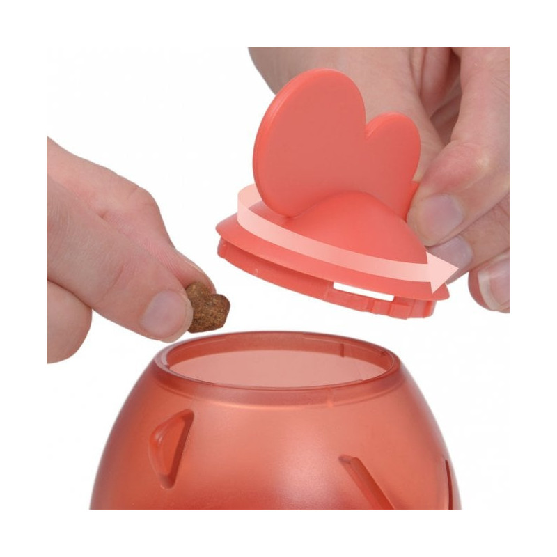 Wewnętrzną komorę zabawki łatwo napełnić. Wystarczy odkręcić górę, włożyć kilka smakołyków i pozwolić kotu na zabawę. Zabawka nie zawiera żadnych baterii, więc jest zawsze gotowa do pracy. Komora na przysmaki jest również wygodnie przezroczysta, dzięki czemu od razu wiadomo, kiedy należy włożyć więcej przysmaków.