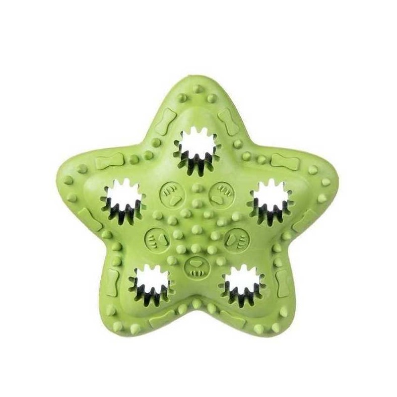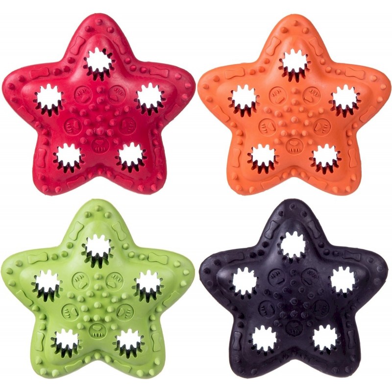 Bardzo wytrzymała zabawka w oryginalnym kształcie gwiazdy, wykonana z wysokiej jakości kauczuku. Zapewnia długie godziny świetnej zabawy, idealna do tresury a także aportowania. Produkt posiada aż pięć otworów, w które można włożyć ulubiony przysmak pupila. Masuje dziąsła i wpływa korzystanie na higienę jamy ustnej psa. W intensywnym, czerwonym kolorze.