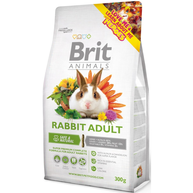 Brit Animals Rabbit Adult Complete to kompletna dieta dla miniaturowych królików o recepturze z optymalną zawartością białek, tłuszczy i włókien, zapewniającej idealne trawienie i wartość odżywczą. Karma zawieraja ziarna, warzywa i owoce zapewniające zwierzęciu cenne dla zdrowia witaminy i mikroelementy.