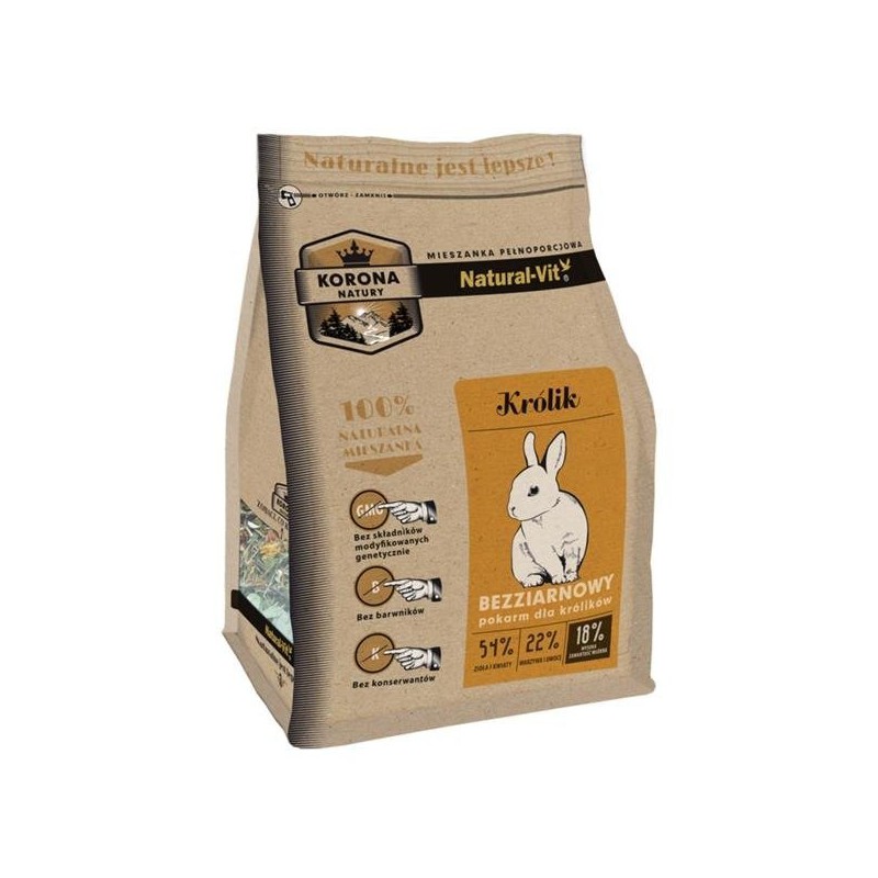 Karma pełnoporcjowa dla królika, z dodatkiem aromatycznych ziół, traw i kwiatów. Wzbogacona o naturalne prebiotyki stymulujące prawidłowe działanie organizmu zwierzęcia, wspomagająca florę jelitową Twojego Pupila.