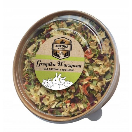 Do warzyw, które pozytywnie wpływają na zdrowie gryzoni i królików zaliczamy: marchewkę, pasternak, brokuł, ogórek, pomidor, burak, szpinak, seler. Z kolei owoce zarówno świeże jak i suszone powinny być podawane okazjonalnie jako smakołyki. Mogą służyć jako element oswajania. Kompozycja wyłącznie naturalnych smaków i zapachów zawarta w mieszance suszonych warzyw.