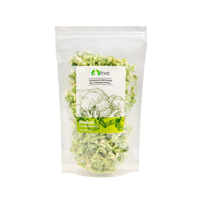 Brokuł liofilizowany to zdrowy dodatek do posiłku pupila. Uzupełnia niedobory witamin (A, C, B1, B2, PP) i soli mineralnych niezbędnych do prawidłowego funkcjonowania organizmu.