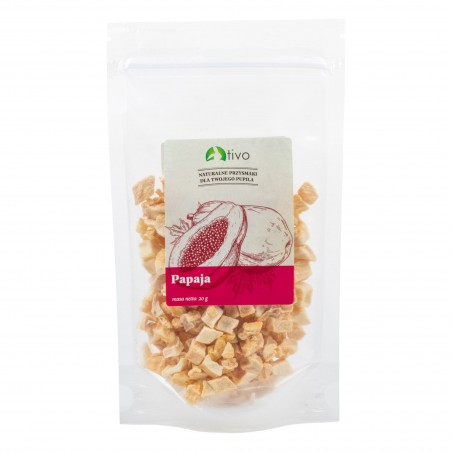 Papaja liofilizowana TIVO wyprodukowane zostało bez dodatku cukru i oleju.