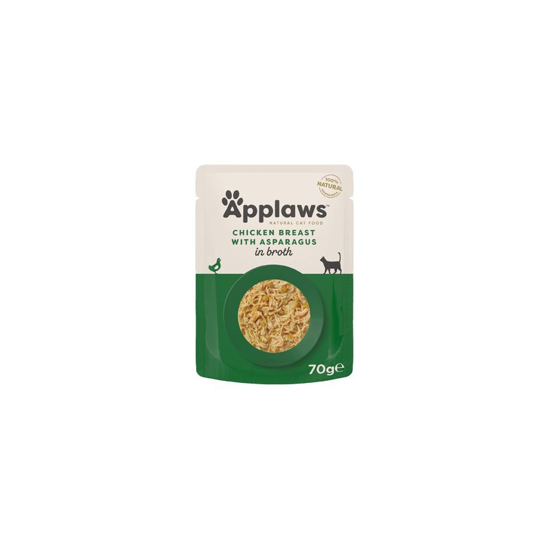 Karma mokra dla kotów Applaws Kurczak z szparagami zawiera wyselekcjonowane składniki - soczyste kawałki mięsa piersi z kurczaka z niewielkim dodatkiem ryżu oraz szparagów.
