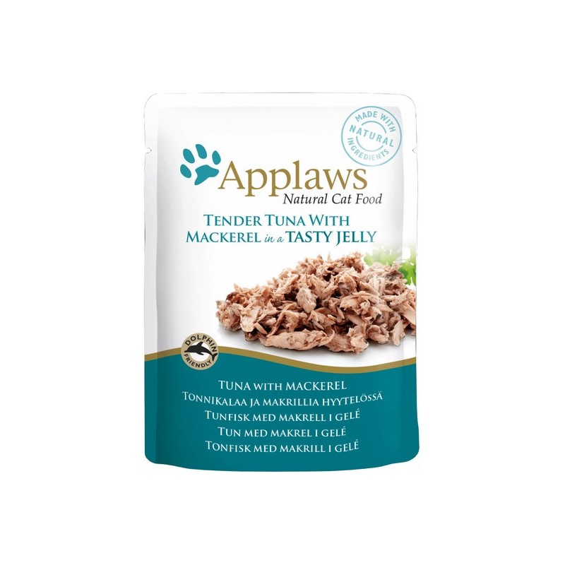 Karma mokra dla kotów Applaws Tuńczyk z makrelą zawiera wyselekcjonowane składniki - soczyste kawałki filetów z tuńczyka oraz makreli.