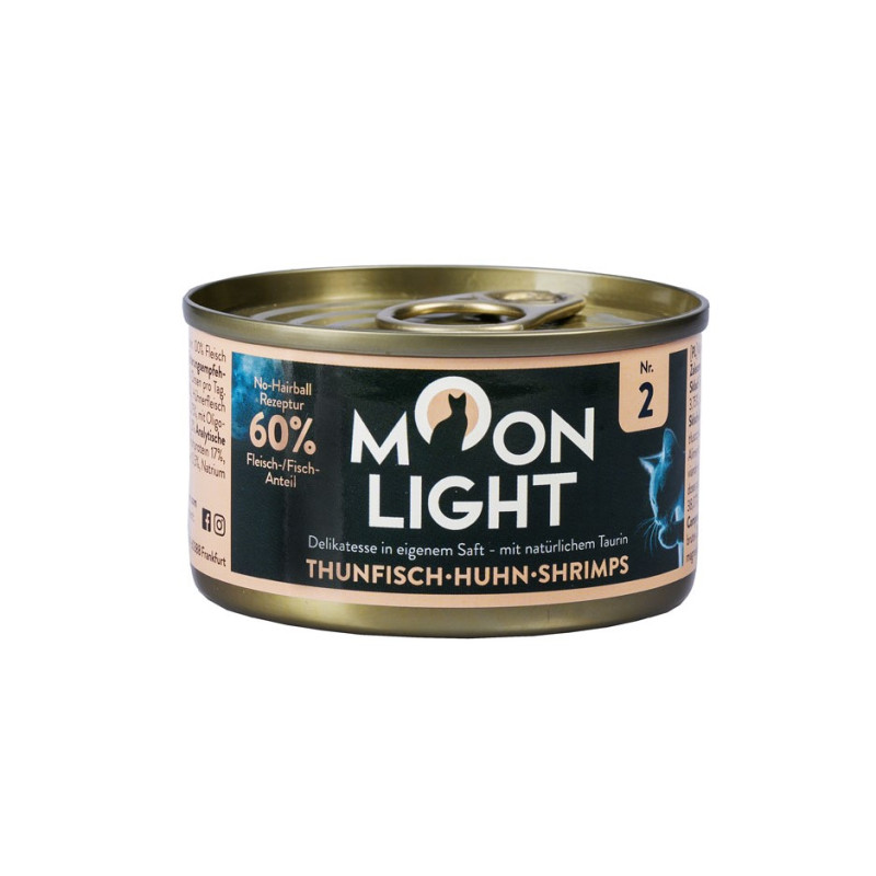 Moonlight Dinner to karma mokra najwyższej jakości dla kotów o podwyższonej smakowitości dzięki produkcji w 100% z naturalnych składników. Składniki używane do produkcji pochodzą wyłącznie z certyfikowanych hodowli oraz legalnych połowisk. Na każdym etapie produkcji kontrolę sprawuje niemiecki urząd jakości. Zastosowano oryginalne receptury, wyłącznie z wysoką zawartością mięsa, ryb oraz innych składników o tzw. jakości spożywczej, czyli przeznaczonej dla ludzi. Ekskluzywności karmy nadaje fakt "ręcznej" obróbki, dzięki czemu w karmie nie ma mięsnych odpadków, a tylko czyste mięso. Specjalne zaprojektowane systemy do przechowania świeżej żywności pomagają zachować oryginalny smak oraz wartości odżywcze i wygląd używanych składników.