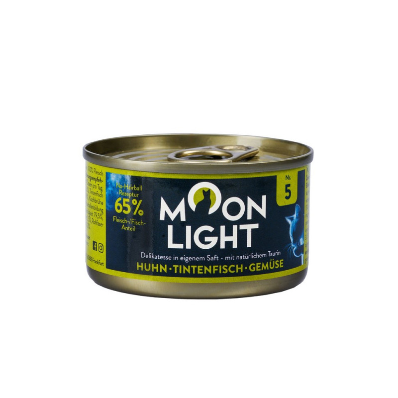 Moonlight Dinner to karma mokra najwyższej jakości dla kotów o podwyższonej smakowitości dzięki produkcji w 100% z naturalnych składników. Składniki używane do produkcji pochodzą wyłącznie z certyfikowanych hodowli oraz legalnych połowisk. Na każdym etapie produkcji kontrolę sprawuje niemiecki urząd jakości. Zastosowano oryginalne receptury, wyłącznie z wysoką zawartością mięsa, ryb oraz innych składników o tzw. jakości spożywczej, czyli przeznaczonej dla ludzi. Ekskluzywności karmy nadaje fakt "ręcznej" obróbki, dzięki czemu w karmie nie ma mięsnych odpadków, a tylko czyste mięso. Specjalne zaprojektowane systemy do przechowania świeżej żywności pomagają zachować oryginalny smak oraz wartości odżywcze i wygląd używanych składników.