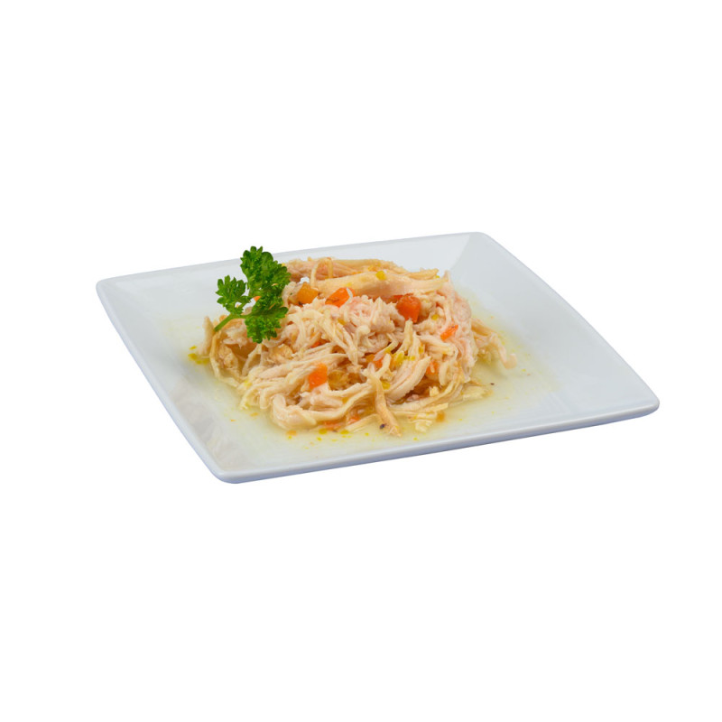 Najwyższej jakości karma mokra dla kota, z mięsnymi filetami z kurczaka, z dodatkiem kałamarnicy i warzyw, w sosie własnym.
