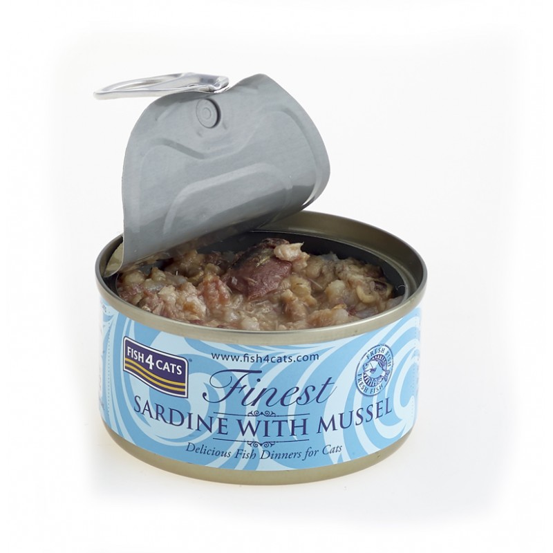 Skład: Sardynka 65%, rosół rybny 26%, omułek zielonowargowy 5%, ryż 4%