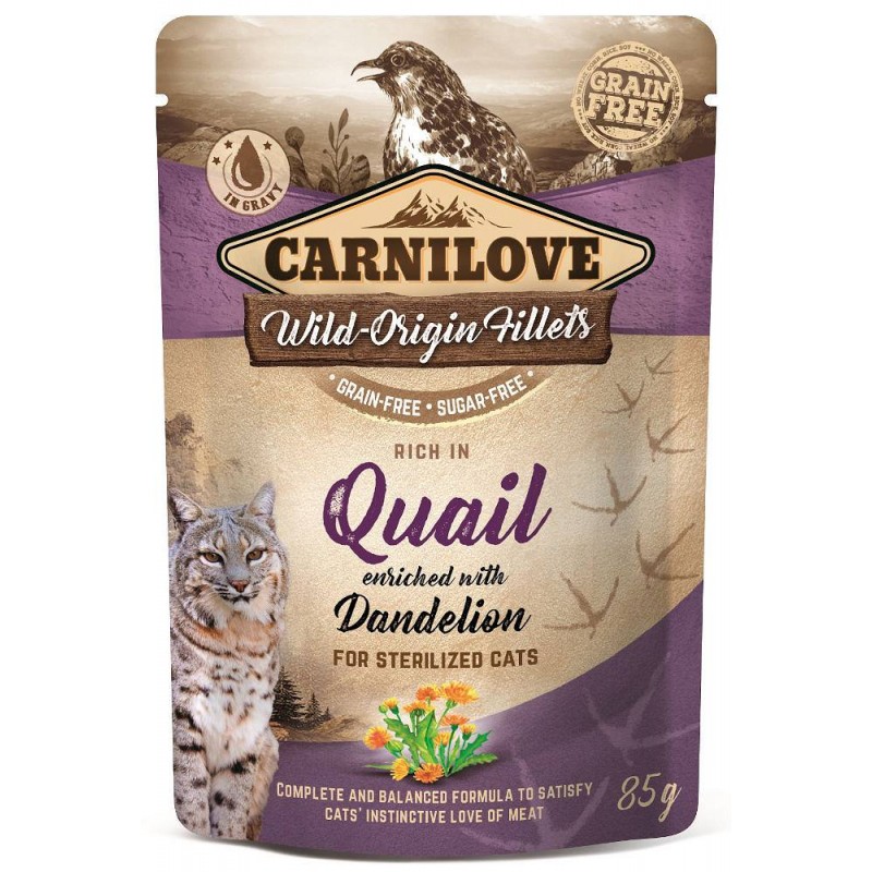 Carnilove Cat Quail&Dandelion to pełnoporcjowa karma mokra dla kotów dorosłych z hipoalergicznym mięsem przepiórki oraz mniszkiem lekarskim. W składzie karmy znajdują się starannie dobrane składniki - wysokiej jakości mięso i produkty pochodzenia zwierzęcego. W karmie nie zostały zastosowane składniki powodujące alergię, co za tym idzie idealnie nadaje się dla kotów alergików.