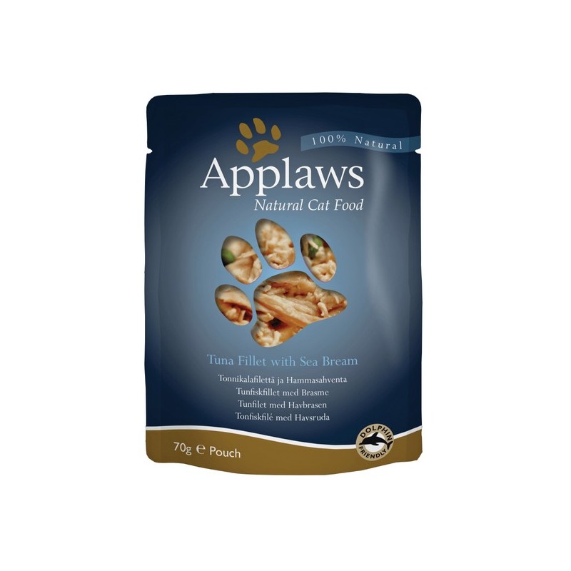 Karma mokra dla kotów Applaws Tuńczyk z anchois zawiera wyselekcjonowane składniki - soczyste kawałki filetów z tuńczyka oraz leszcza z niewielkim dodatkiem brązowego ryżu oraz wodorostów.