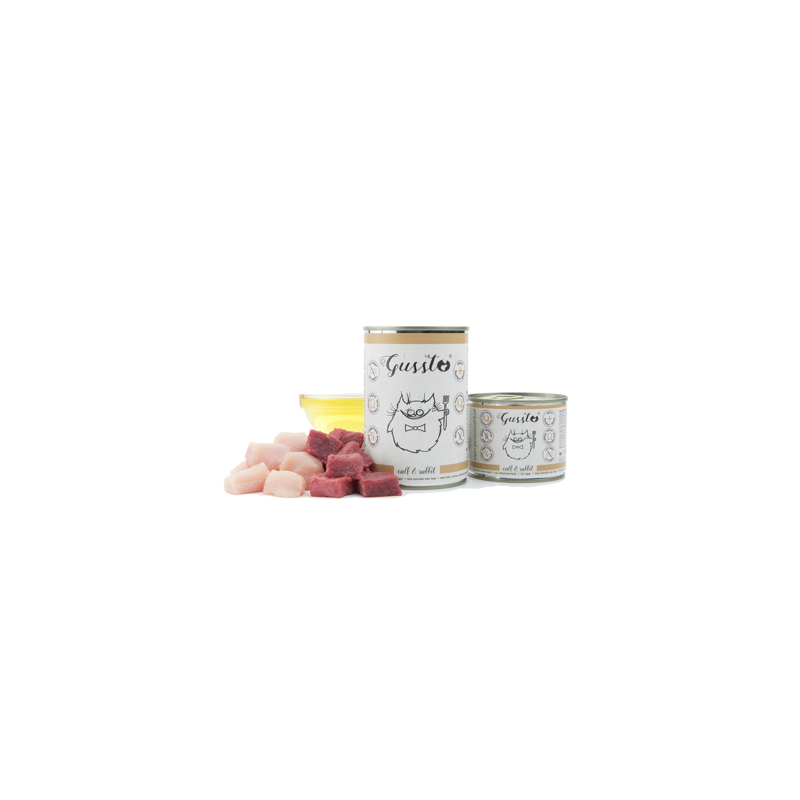 Mokra karma Gussto Fresh Calf & Rabbit produkowana jest w 100% z najwyższej jakości świeżego mięsa w wysokim standardzie odpowiadającym wymaganiom żywności dla ludzi. Gussto to esencja dobrego i zdrowego żywienia. Zawiera bardzo dużo mięsa idealnie odpowiadając specyficznym wymaganiom pokarmowym kotów. Jest to karma lekkostrawna i bardzo dobrze przyswajalna polecana również kotom o wrażliwym przewodzie pokarmowym. Stosowana także w dietach wykluczających przy alergiach pokarmowych. Znakomicie zrównoważony stosunek wapń/fosfor minimalizuje ryzyko chorób układu moczowego i nerek. Dodatkowo karma Gussto zawiera dużo niezbędnych witamin i minerałów jest bardzo bogata w Taurynę i Biotynę, a w jej skład wchodzi dobroczynny olej z ostropestu – bogaty w nienasycone kwasy tłuszczowe, który ma działanie przeciwzapalne, reguluje czynności trawienne i regeneracyjne wątroby, oraz wzmacnia system odpornościowy.