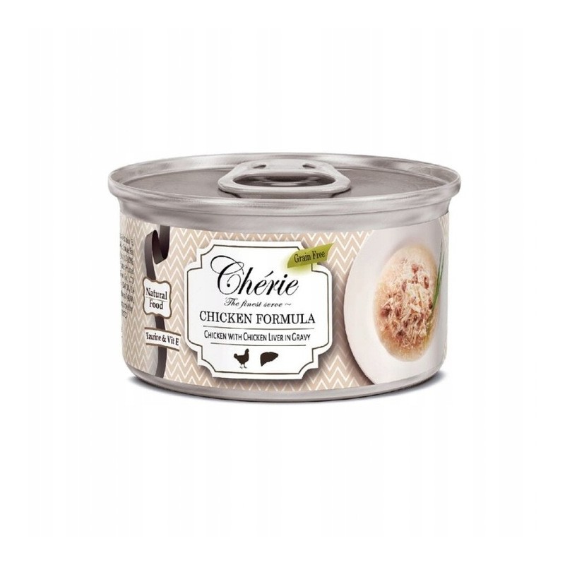 Pettric Cherie Kurczak z wątróbka kurczęcą w sosie to apetyczna przystawka dla Twojego mruczka. Naturalny smak i smakowity sos Chérie to luksusowe doznania smakowe dla kotów. Każdy autorski przepis zawiera delikatne kawałki naturalnych owoców morza w pysznym sosie. Karma uzupełniająca dla kotów.
