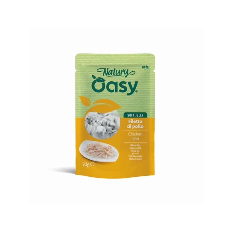 Oasy z serii Natury to karma uzupełniająca przygotowana z wysokiej jakości składników, z wysoką zawartością mięsa i/lub ryby. Karma ma postać cienko krojonych filetów w delikatnej galaretce. Nie zawierają sztucznych barwników, aromatów ani konserwantów. produkowane bez użycia GMO i soi.