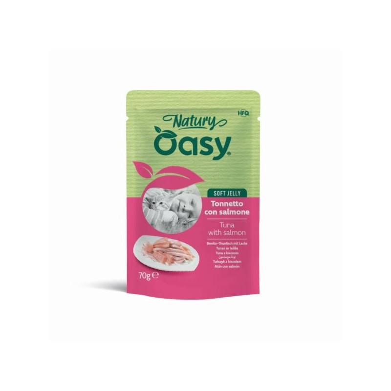 Oasy z serii Natury to karma uzupełniająca przygotowana z wysokiej jakości składników, z wysoką zawartością mięsa i/lub ryby. Karma ma postać cienko krojonych filetów w delikatnej galaretce. Nie zawierają sztucznych barwników, aromatów ani konserwantów. produkowane bez użycia GMO i soi.