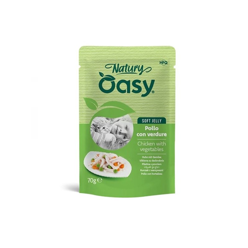 Oasy z serii Natury to karma uzupełniająca przygotowana z wysokiej jakości składników, z wysoką zawartością mięsa i/lub ryby. Karma ma postać cienko krojonych filetów w delikatnej galaretce. Nie zawierają sztucznych barwników, aromatów ani konserwantów. produkowane bez użycia GMO i soi.