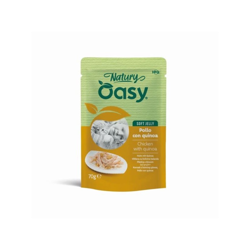 Oasy z serii Natury to karma uzupełniająca przygotowana z wysokiej jakości składników, z wysoką zawartością mięsa i/lub ryby. Karma ma postać cienko krojonych filetów w delikatnej galaretce. Nie zawierają sztucznych barwników, aromatów ani konserwantów. produkowane bez użycia GMO i soi.