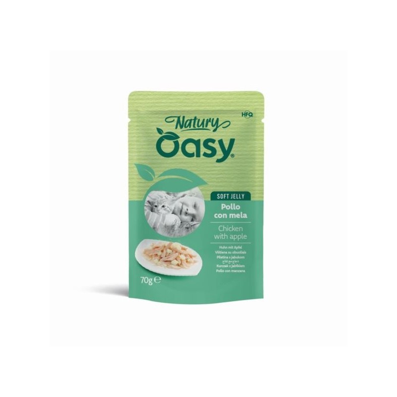 Oasy z serii Natury to karma uzupełniająca przygotowana z wysokiej jakości składników, z wysoką zawartością mięsa i/lub ryby. Karma ma postać cienko krojonych filetów w delikatnej galaretce. Nie zawierają sztucznych barwników, aromatów ani konserwantów. produkowane bez użycia GMO i soi.