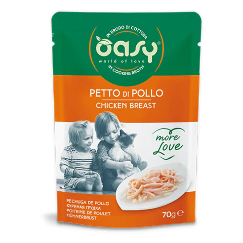 Oasy More Love to naturalna karma uzupełniająca przygotowana z najwyższej jakości składników, z dużą zawartością mięsa i ryby, pochodzących tylko z ich najlepszych części. Stworzona, aby zachwycać wyszukanymi recepturami i oryginalnymi składnikami. Zgodnie z filozofią firmy Oasy, linia More Love oznacza produkty możliwe do zidentyfikowania i zrównoważone. Nie zawierają sztucznych barwników, aromatów ani konserwantów. produkowane bez użycia GMO i soi.