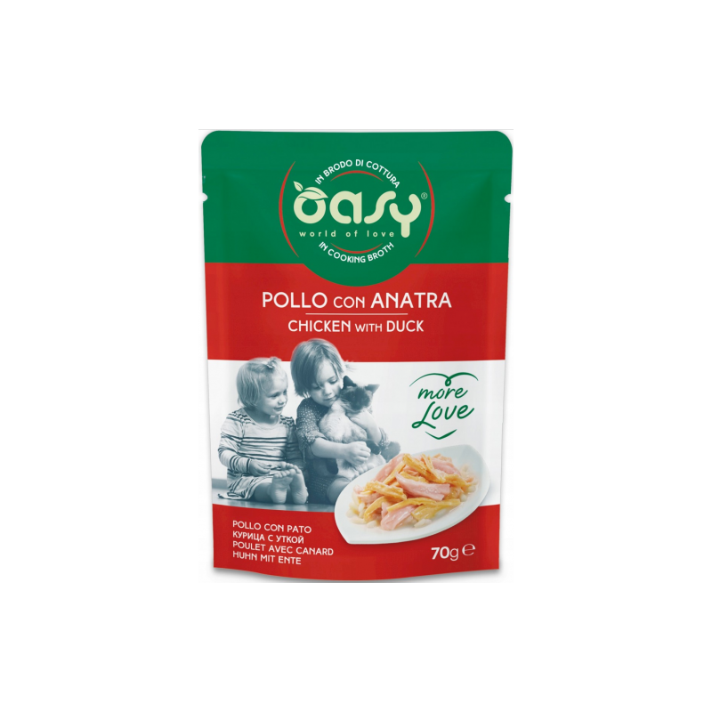Oasy More Love to naturalna karma uzupełniająca przygotowana z najwyższej jakości składników, z dużą zawartością mięsa i ryby, pochodzących tylko z ich najlepszych części. Stworzona, aby zachwycać wyszukanymi recepturami i oryginalnymi składnikami. Zgodnie z filozofią firmy Oasy, linia More Love oznacza produkty możliwe do zidentyfikowania i zrównoważone. Nie zawierają sztucznych barwników, aromatów ani konserwantów. produkowane bez użycia GMO i soi.