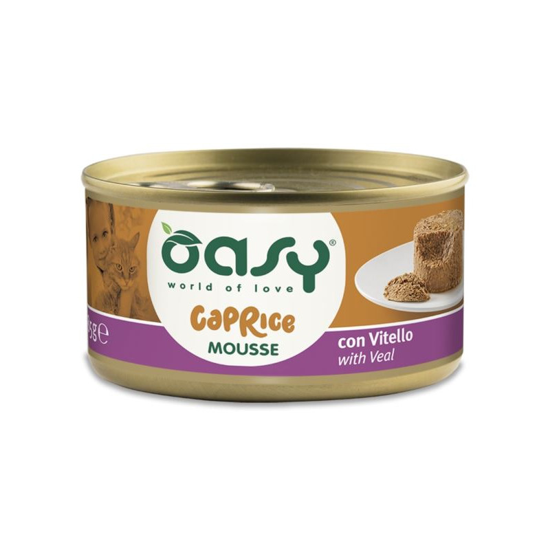 Oasy Caprice Mousse to pełnowartościowa karma mokra dla kotów o delikatnej miękkiej konsystencji musu. Jest to idealny posiłek nawet dla najbardziej wybrednych podniebień. Formuła karmy nie zawiera zbóż. GMO czy soi, wykonana z wysokiej jakości naturalnych składników, bez konserwantów i sztucznych aromatów.