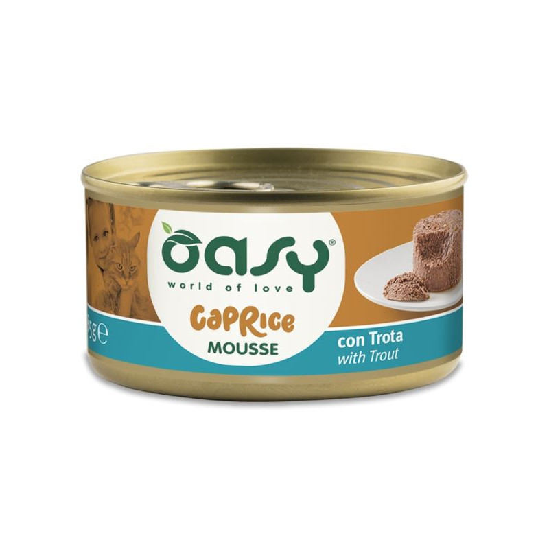 Oasy Caprice Mousse to pełnowartościowa karma mokra dla kotów o delikatnej miękkiej konsystencji musu. Jest to idealny posiłek nawet dla najbardziej wybrednych podniebień. Formuła karmy nie zawiera zbóż. GMO czy soi, wykonana z wysokiej jakości naturalnych składników, bez konserwantów i sztucznych aromatów.