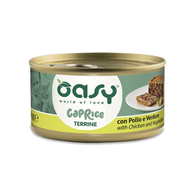 Oasy Caprice Terrine to pełnowartościowa karma mokra dla kotów w formie pysznego pasztetu. Jest to idealny posiłek nawet dla najbardziej wybrednych podniebień. Formuła karmy nie zawiera zbóż. GMO czy soi, wykonana z wysokiej jakości naturalnych składników, bez konserwantów i sztucznych aromatów.