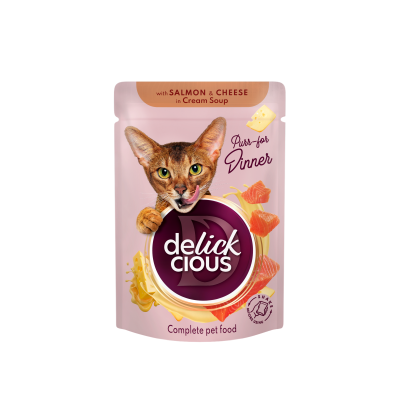Paski z wyselekcjonowanym łososiem z serem otulone delikatną zupą krem to codzienna porcja smaku i energii dla kota. Ta pełnoporcjowa karma w saszetkach została stworzona z myślą o potrzebach dorosłych kotów, zapewniając im równowagę składników odżywczych i wyjątkowy smak, który zachwyci nawet najbardziej wymagające podniebienia.