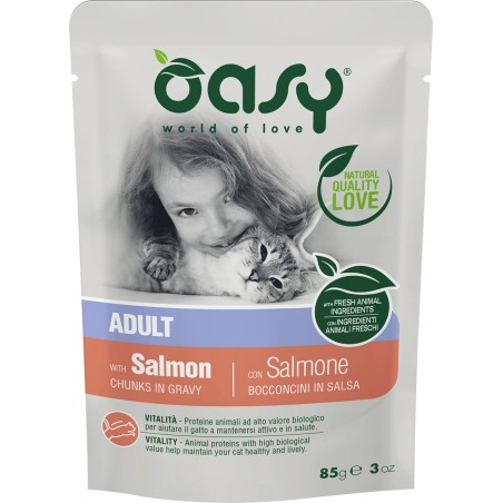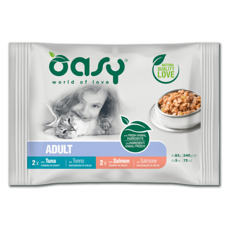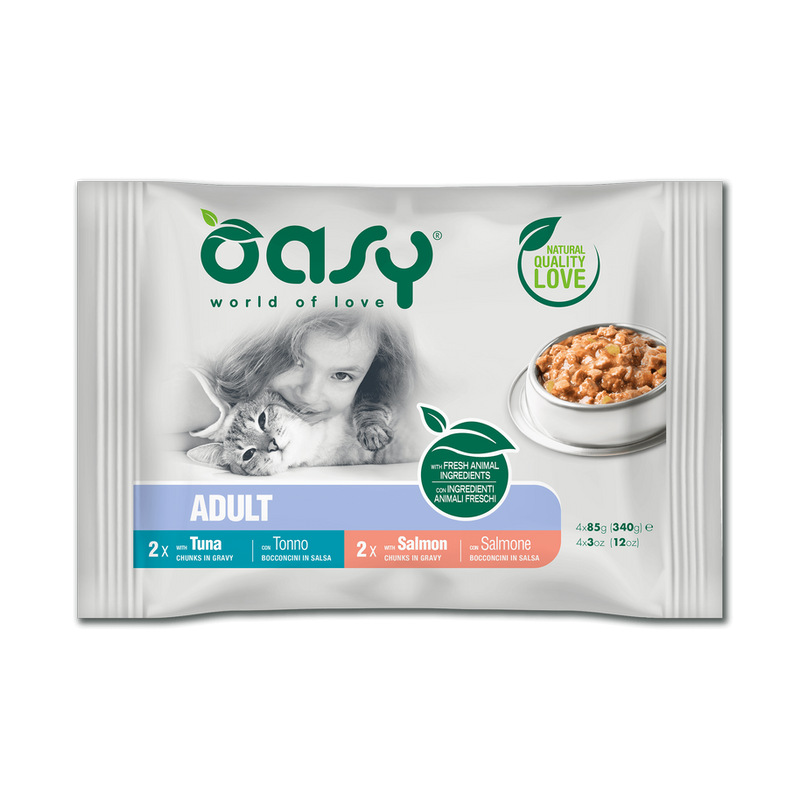 Karma mokra dla kotów Oasy z serii Lifestage to karma pełnoporcjowa przygotowana z wysokiej jakości składników, z wysoką zawartością mięsa i/lub ryby. Karma ma postać delikatnych kawałków w pysznym sosie. Nie zawierają sztucznych barwników, aromatów ani konserwantów. Produkowane bez użycia GMO i soi. Opracowane tak, aby zaspokoić szczególne wymagania kotów, także ze względu na ich wiek i specyficzne potrzeby.