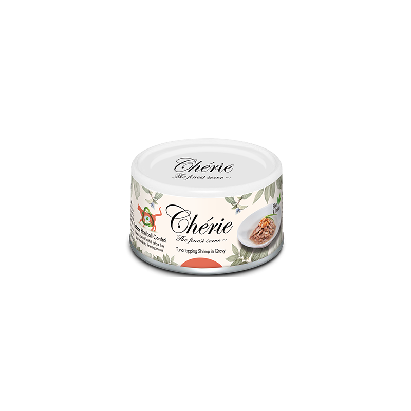 Cherie to ekskluzywna, uzupełniająca mokra karma w sosie, zaprojektowana specjalnie dla dorosłych kotów. Delikatne kawałki tuńczyka z dodatkiem krewetek w soczystym sosie to smakowite doznanie i luksusowy dodatek do codziennej diety. Formuła wspomaga kontrolę kul włosowych i działa profilaktycznie na drogi moczowe