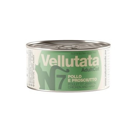 Vellutata V07 Chicken Ham to formuła oparta na delikatnym mięsie z kurczaka z dodatkiem szynki.