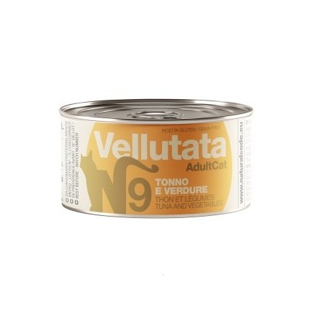 Vellutata V09 Tuna and vegetables to karma uzupełniająca dla dorosłych kotów z dużą zawartością tuńczyka i warzyw oraz dodatkiem skrobi z tapioki.