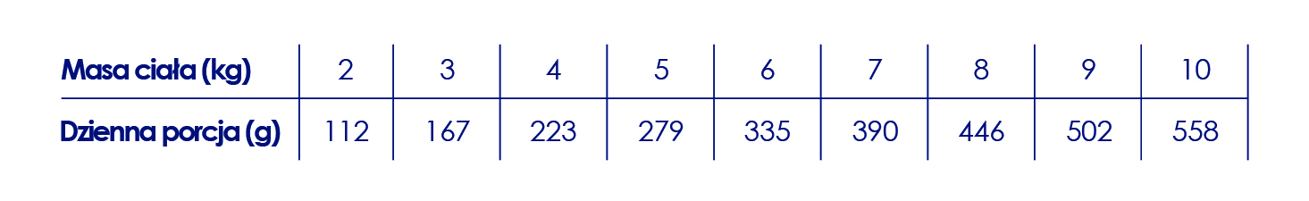 Taka receptura to odpowiedź na naturalne potrzeby żywieniowe kota. Odpowiednio zbilansowany stosunek białka do tłuszczu (zawartość tłuszczu w suchej masie nie przekracza 25%) sprawia, że karma idealnie nadaje się również dla kotów po sterylizacji, prowadzących spokojniejszy tryb życia lub mających tendencję do nadwagi.