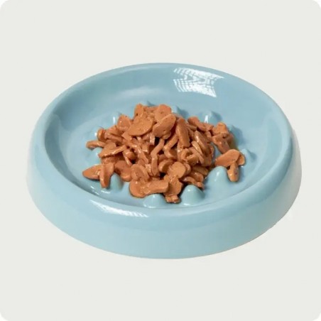 Skład: Kurczak 28,00%, tuńczyk 11,00%, mąka pszenna 8,00%, minerały i witaminy 2,00%, hydrolizowane białko kurczaka 1,00%, aminokwas (glicyna) 1,00%, monosacharyd 0,20%, guma guar 0,10%, ekstrakt z juki 0,05%, prebiotyk (inulina, FOS, MOS) 0,05%, tauryna 0,03%, woda 48,57%.