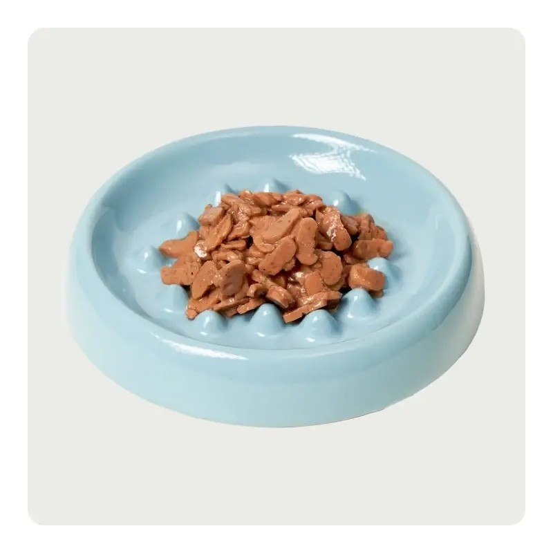 Skład: Kurczak 28,00%, łosoś 11,00%, mąka pszenna 8,00%, minerały i witaminy 2,00%, hydrolizowane białko kurczaka 1,00%, aminokwas (glicyna) 1,00%, monosacharyd 0, 20%, guma guar 0,10%, ekstrakt z juki 0,05%, prebiotyk (inulina, FOS, MOS) 0,05%, tauryna 0,03%, barwnik spożywczy [E172 (ii)] 0,02%, barwnik spożywczy [E172 (iii)] 0. 02%, woda 48,53%.