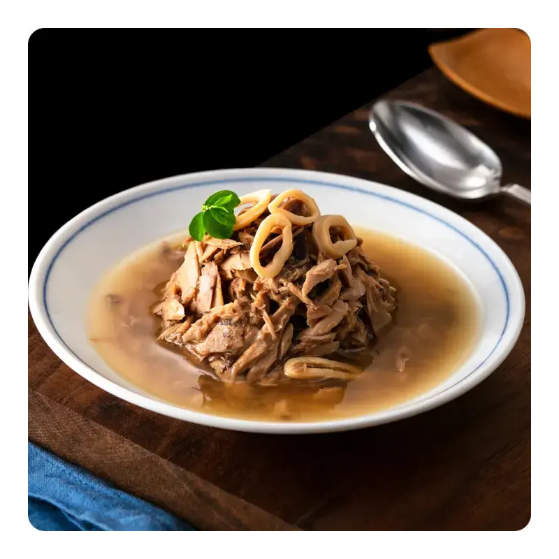 Skład: Bulion rybny 56,60%, tuńczyk 41,00%, kalmary 2,40%.
