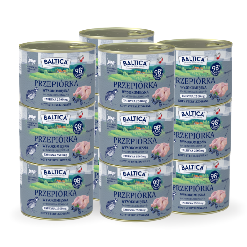 Karma mokra dla kotów opracowana z myślą o codziennym, świadomym żywieniu osobników dorosłych każdej rasy, w tym również po sterylizacji, z ograniczoną aktywnością oraz z wrażliwym przewodem pokarmowym. Stanowi fundament wysokostrawnej diety z udziałem jednego rodzaju mięsa w celu ograniczenia wystąpienia reakcji alergicznych. Każda porcja zawiera aż 98% składników mięsnych, w tym 63% mięsa mięśniowego (filet i mięśnie przepiórki) oraz 10% wartościowych podrobów: 5% nerek i 5% wątroby.