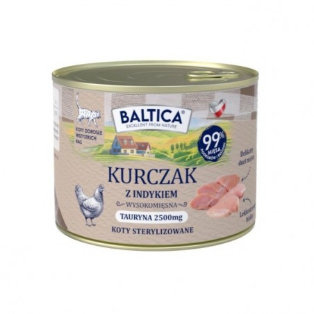 Bezzbożowa duobiałkowa lekkostrawna uczta stworzona na bazie delikatnego mięsa kurczaka oraz indyka. Karma mokra dla kotów opracowana z myślą o codziennym, świadomym żywieniu osobników dorosłych każdej rasy, w tym również po sterylizacji, z ograniczoną aktywnością oraz z wrażliwym przewodem pokarmowym.