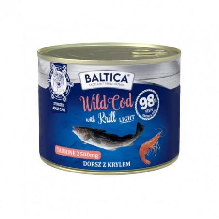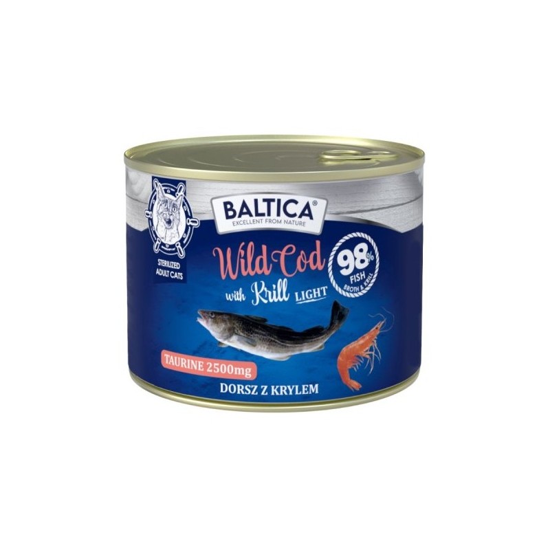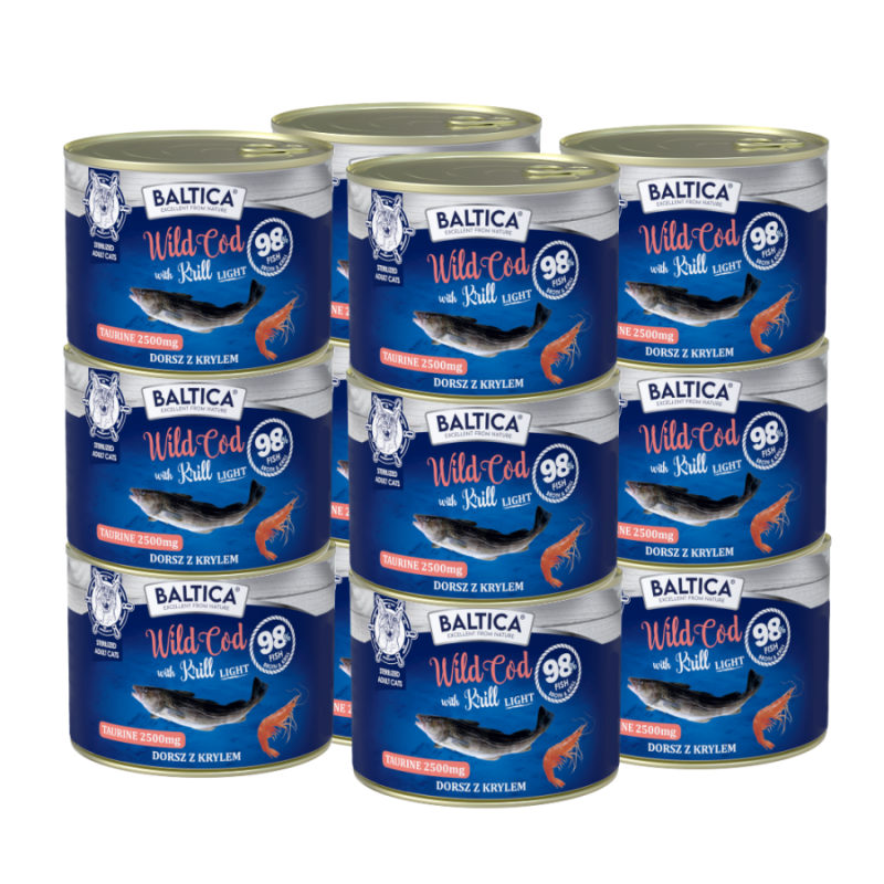 Wysokomięsna, bezzbożowa karma mokra LIGHT dla kotów dorosłych stworzona z wyjątkowego duetu kryla i dzikiego dorsza z dodatkiem krewetki. To pełnowartościowa, niskokaloryczna receptura opracowana specjalnie dla kotów sterylizowanych oraz ze skłonnością do nadwagi, wspiera utrzymanie prawidłowej masy ciała bez kompromisów w smaku.